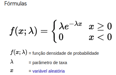 Exemplo: você quer saber a probabilidade de um aparelho eletrônico continuar funcionando após 3 anos, sabendo que, em média, ele dura 2 anos. A probabilidade de ele continuar funcionando diminui com o passar do tempo, o que é uma característica da distribuição exponencial.