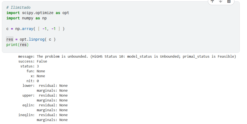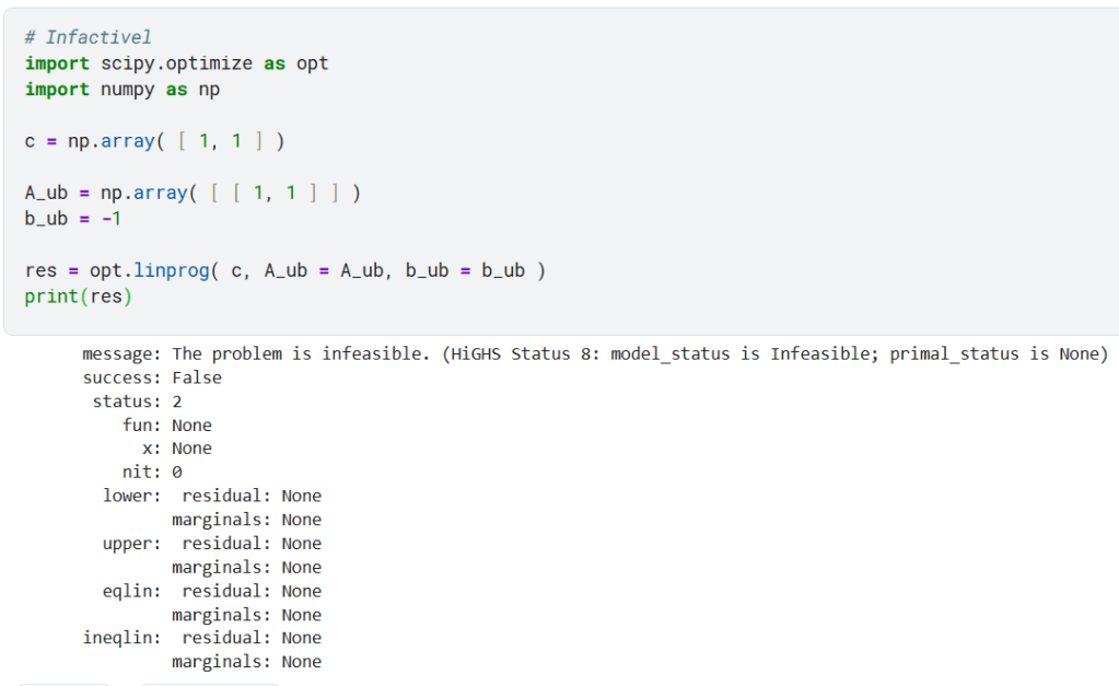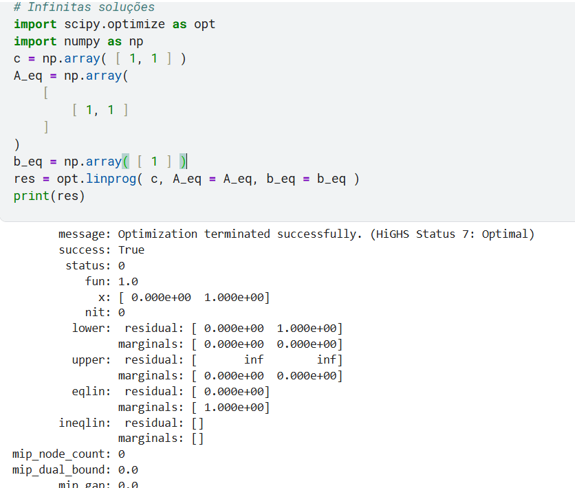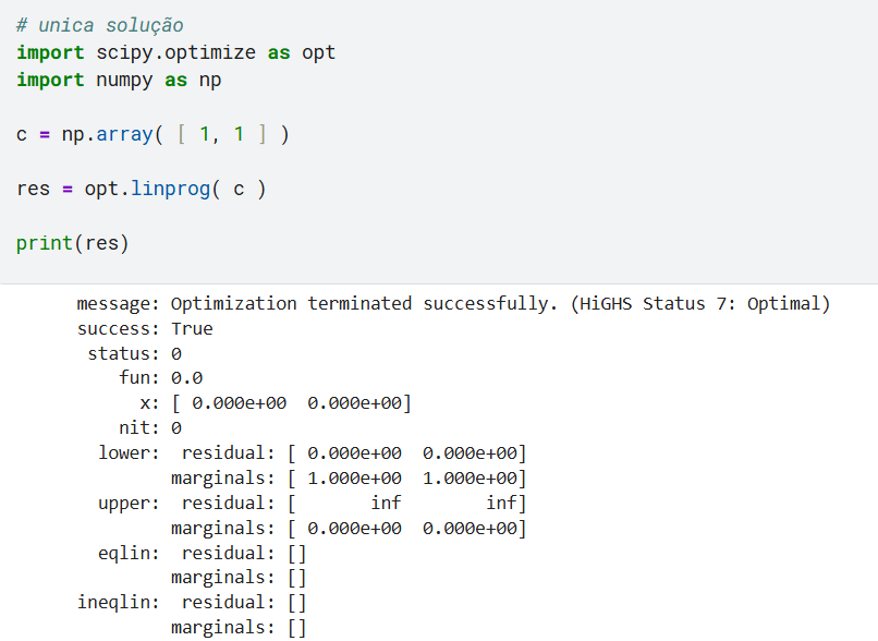 Obs: por padrao no linprog bounds = ( 0, None ), que são as restrições da “Unica solução”