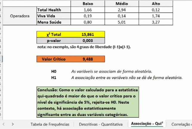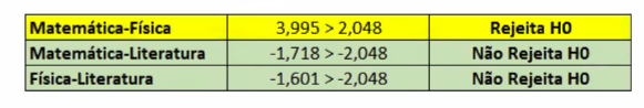 - Usar a fórmula do teste escolhido.