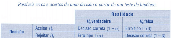 No quadro de decisão em testes de hipótese em formato de imagem, com destaque visual:
