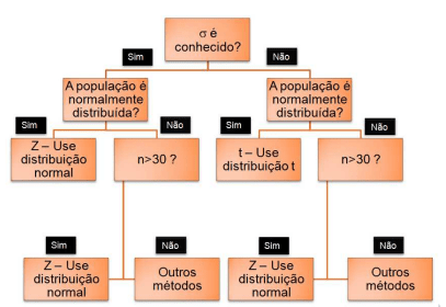 - Se σ (variância populacional) é desconhecida → teste t de Student (mais comum).